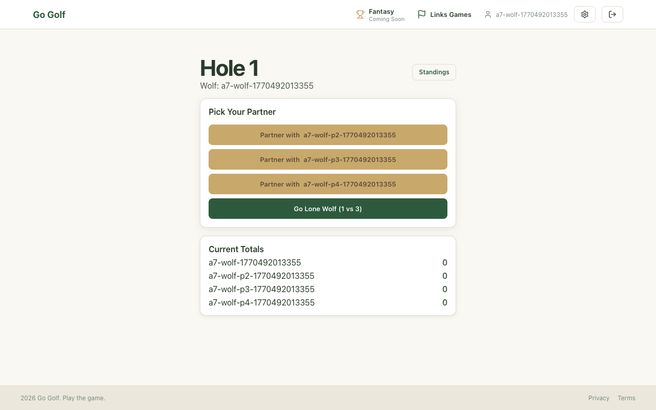 Step 10: Play hole 1: 2v2 Wolf wins