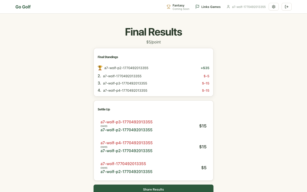 Step 25: Play hole 16: 2v2 Wolf wins
