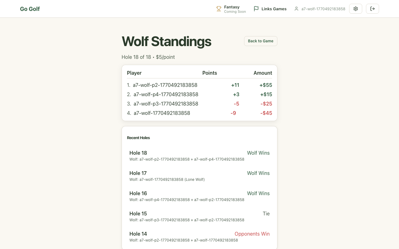 Step 11: Play hole 2: Lone Wolf Wolf wins