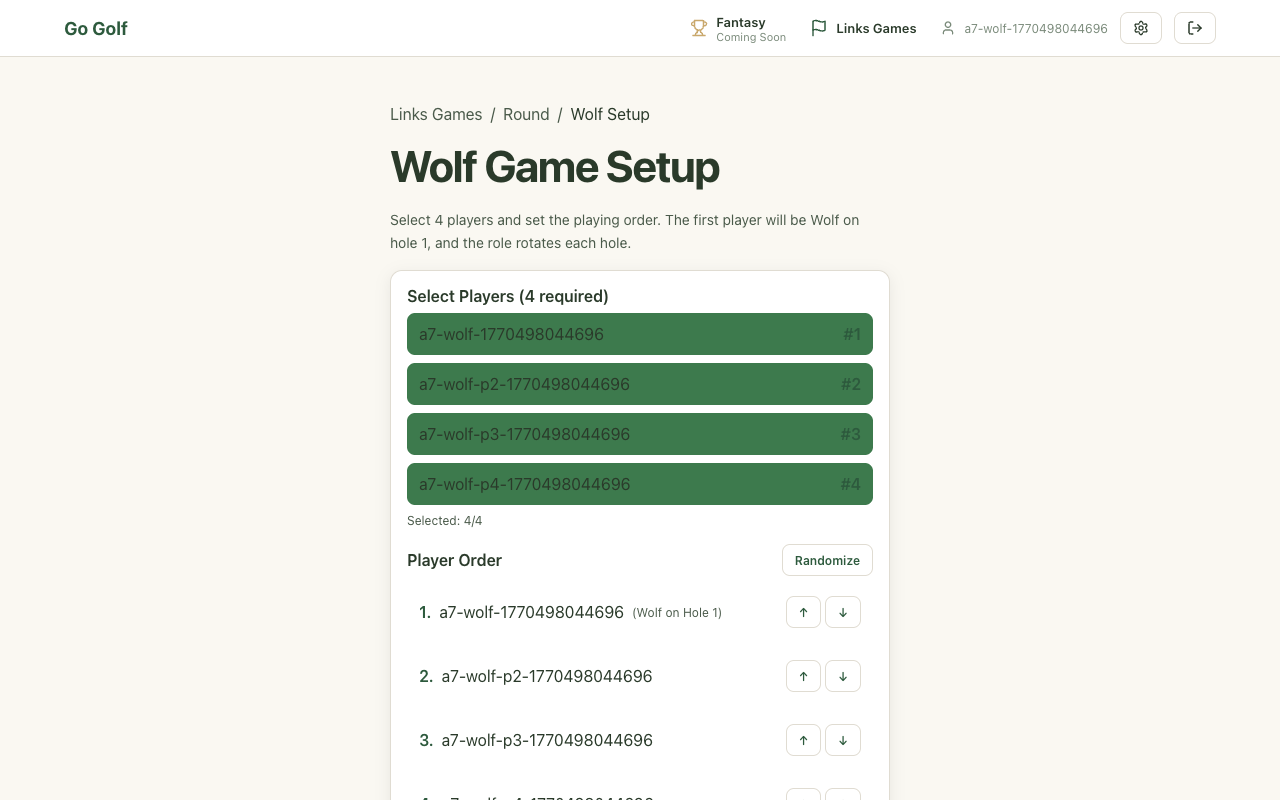 Step 9: Verify 4 players are auto-selected
