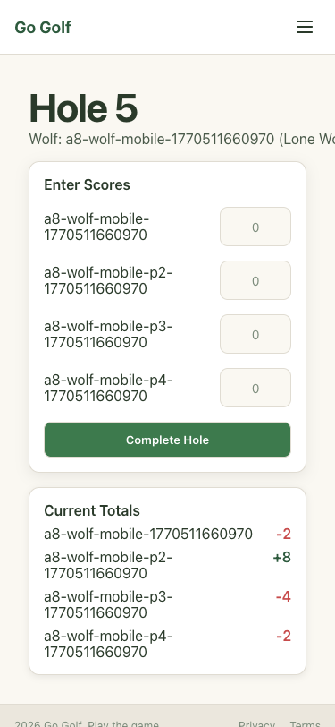 Step 27: Hole 5: Enter scores and complete
