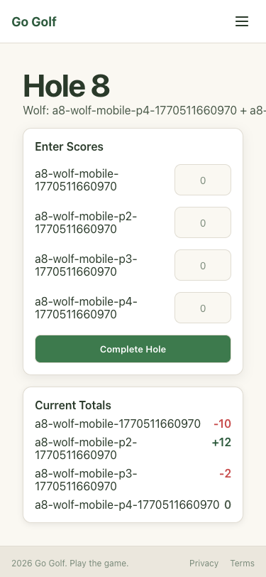 Step 36: Hole 8: Enter scores and complete