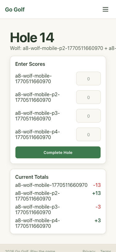 Step 54: Hole 14: Enter scores and complete