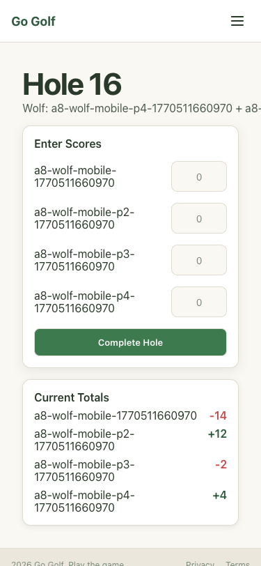 Step 60: Hole 16: Enter scores and complete