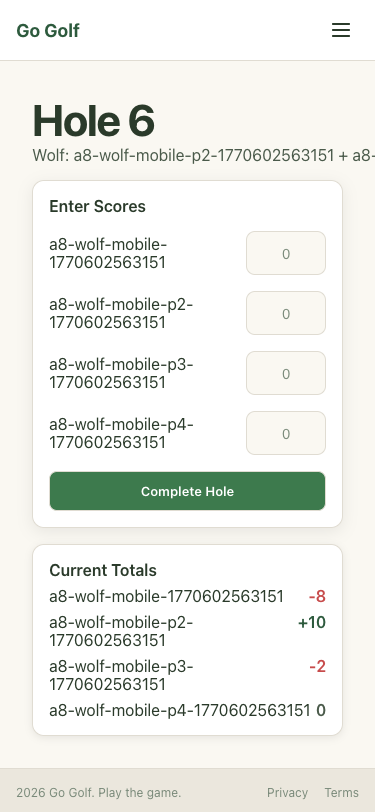 Step 30: Hole 6: Enter scores and complete
