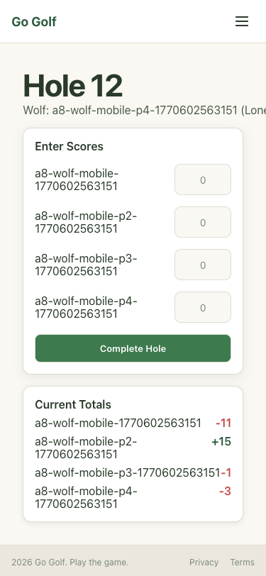 Step 48: Hole 12: Enter scores and complete