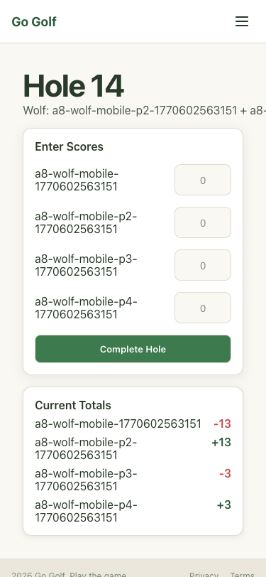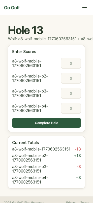 Step 51: Hole 13: Enter scores and complete