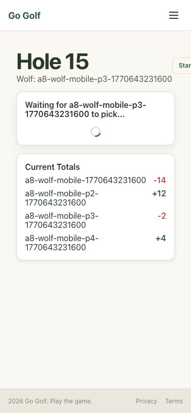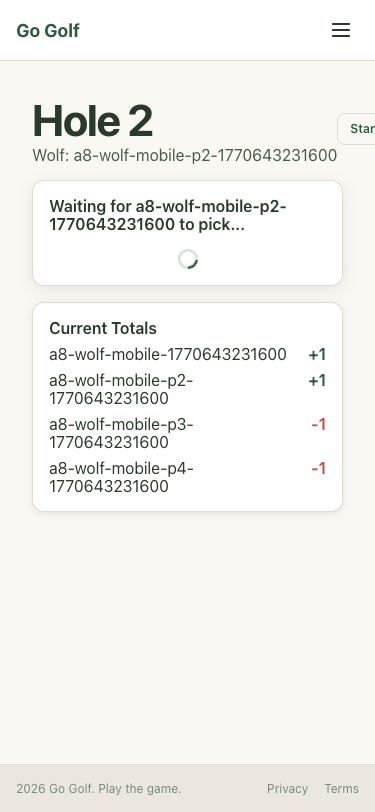 Step 14: Hole 1: Select partner P2