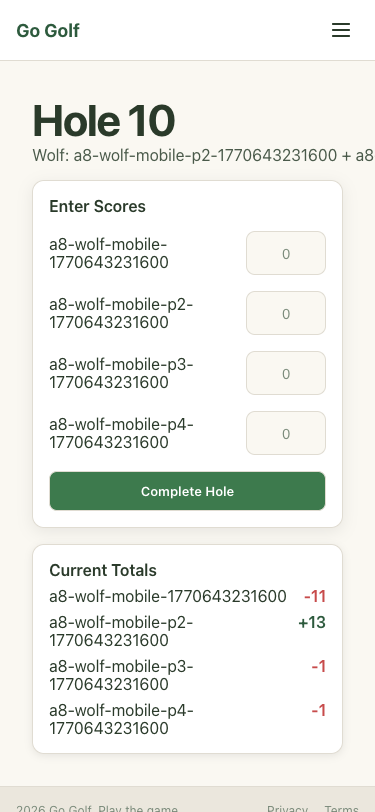 Step 42: Hole 10: Enter scores and complete