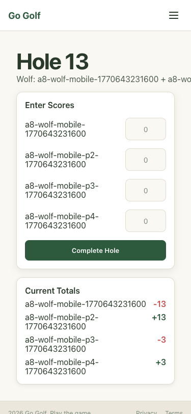 Step 51: Hole 13: Enter scores and complete