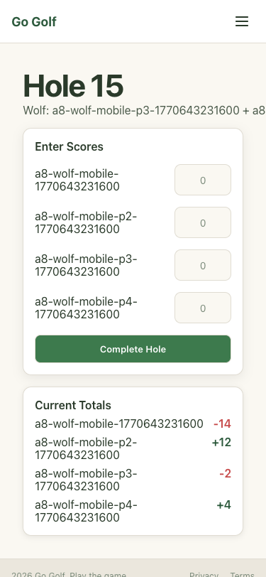 Step 54: Hole 14: Enter scores and complete